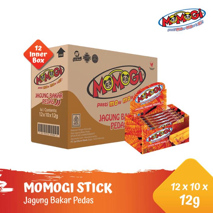 Momogi Stick Jagung Bakar Pedas 12gr (1 Karton @ 12 Box)